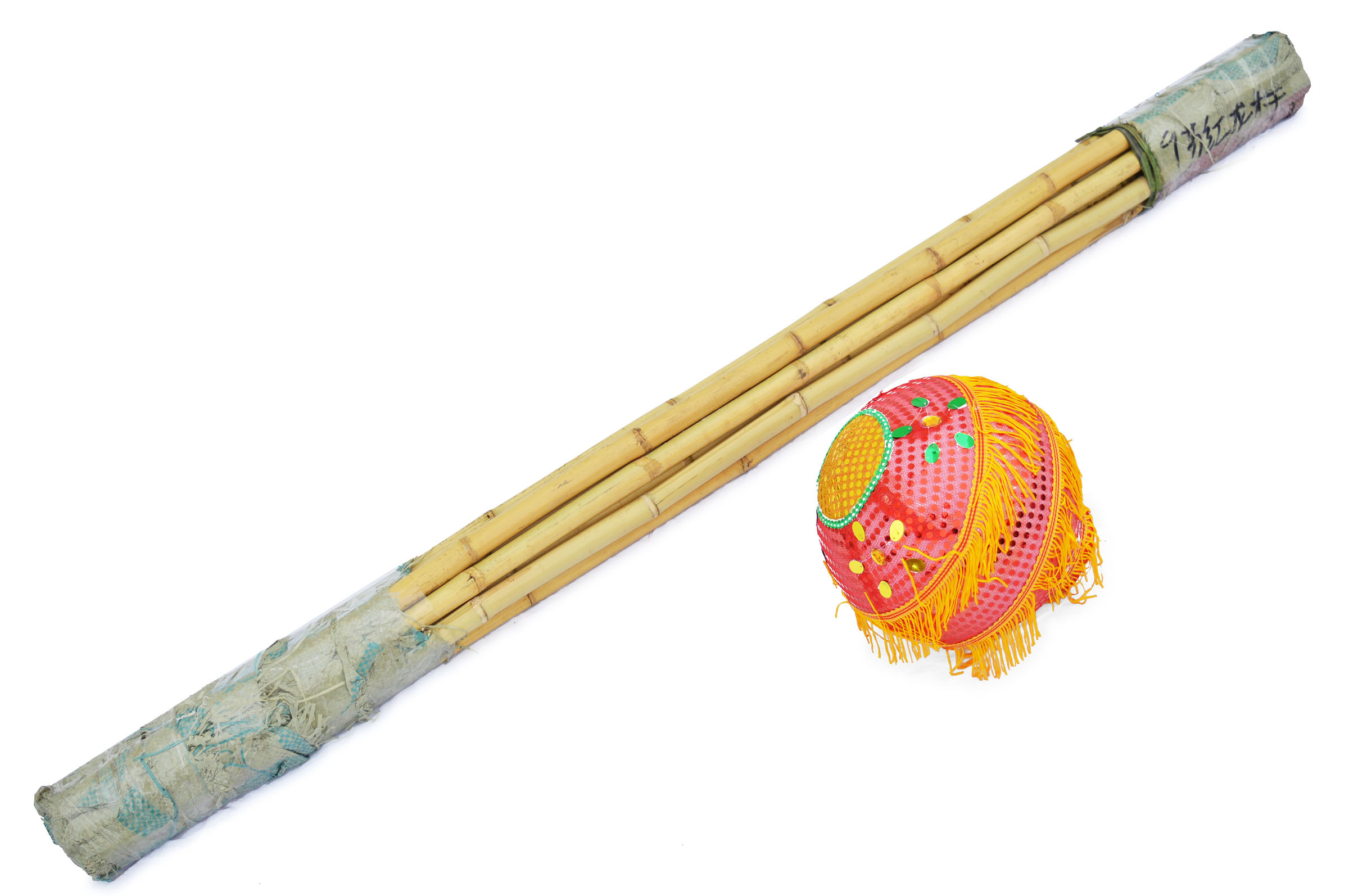 - Dragon en tissu satin et bâtons en bambou