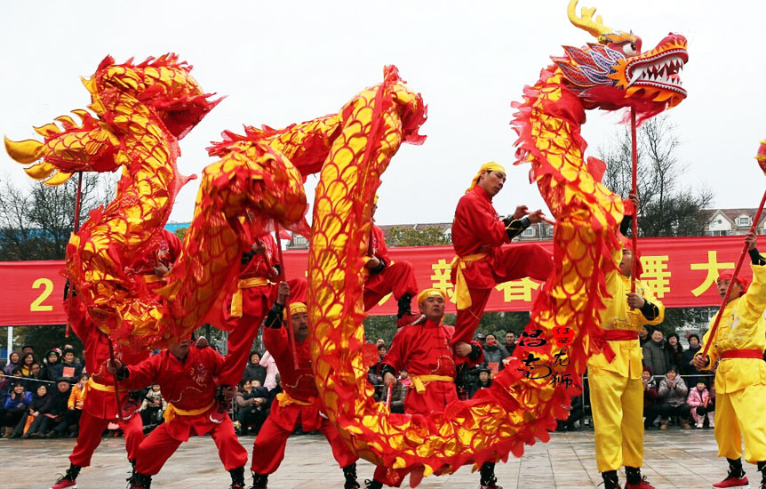 La danse du Dragon mêle danse et acrobaties. En effet, cette danse se doit d'être impressionnante et aérienne pour donner beaucoup de réalisme au dragon.