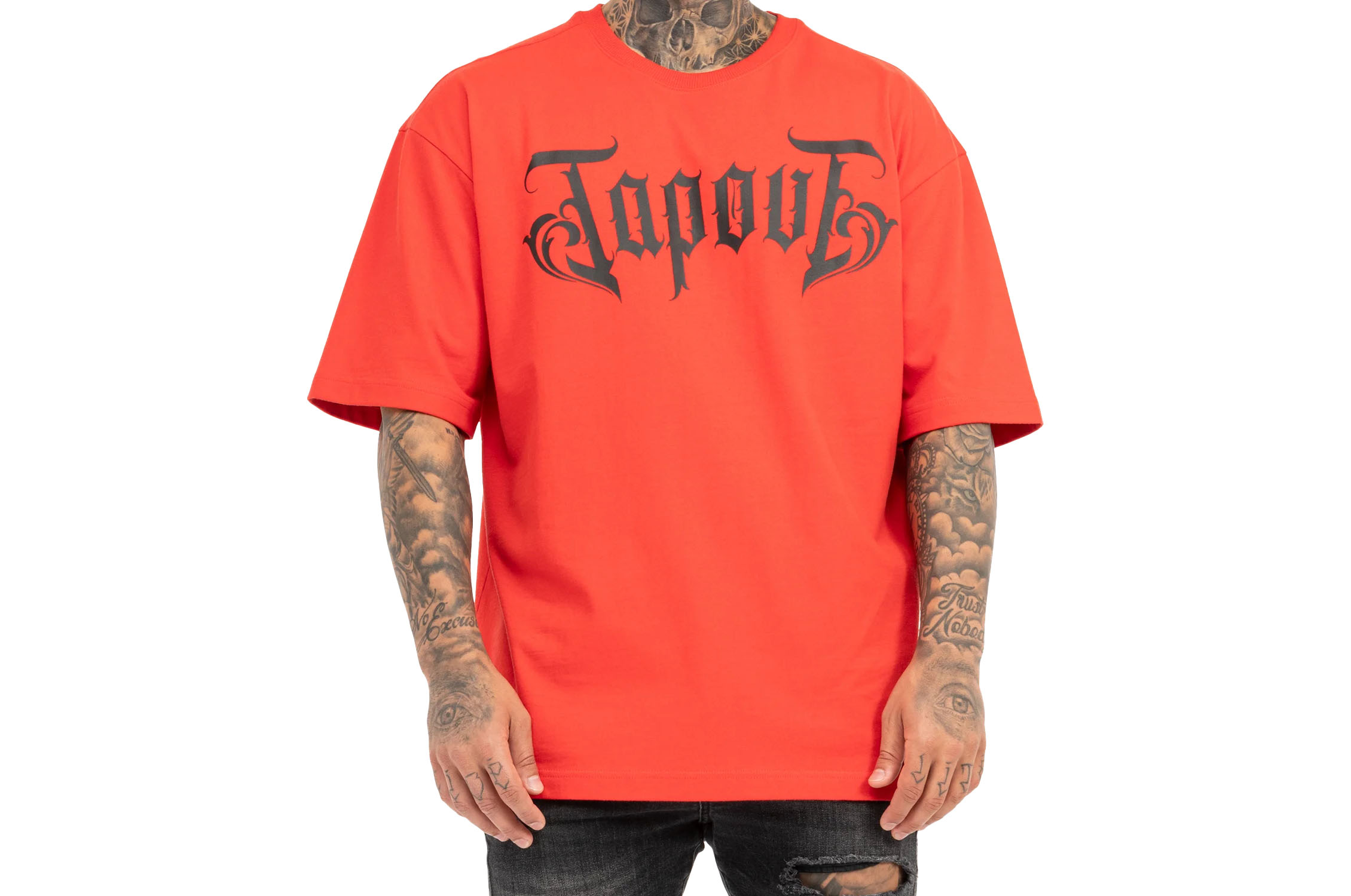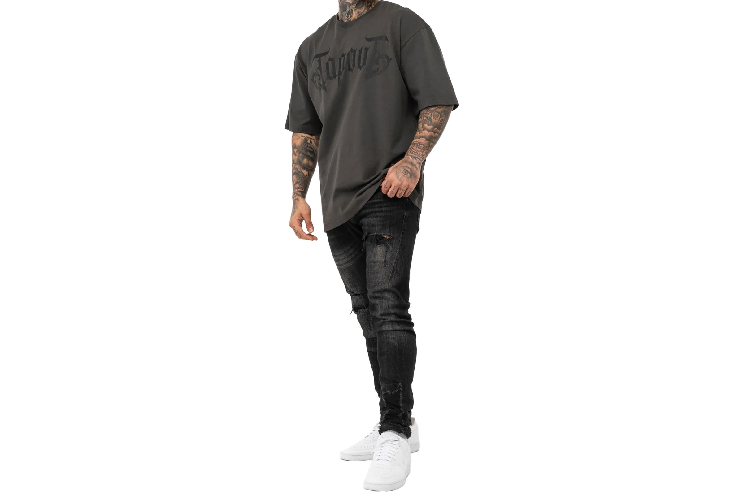 - Graças ao peso pesado do tecido, a t-shirt oversized cai perfeitamente